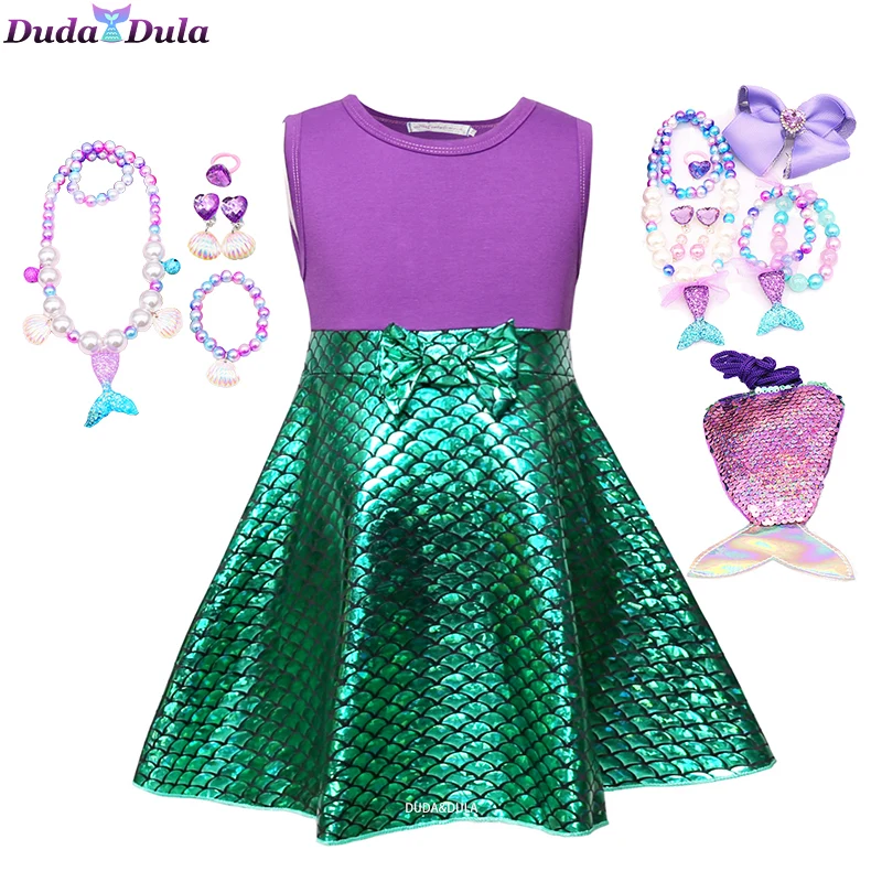 Платье-Русалка для девочек, детские праздничные платья для дня рождения, костюмы принцессы Русалочки на Хэллоуин, Рождество, наряд