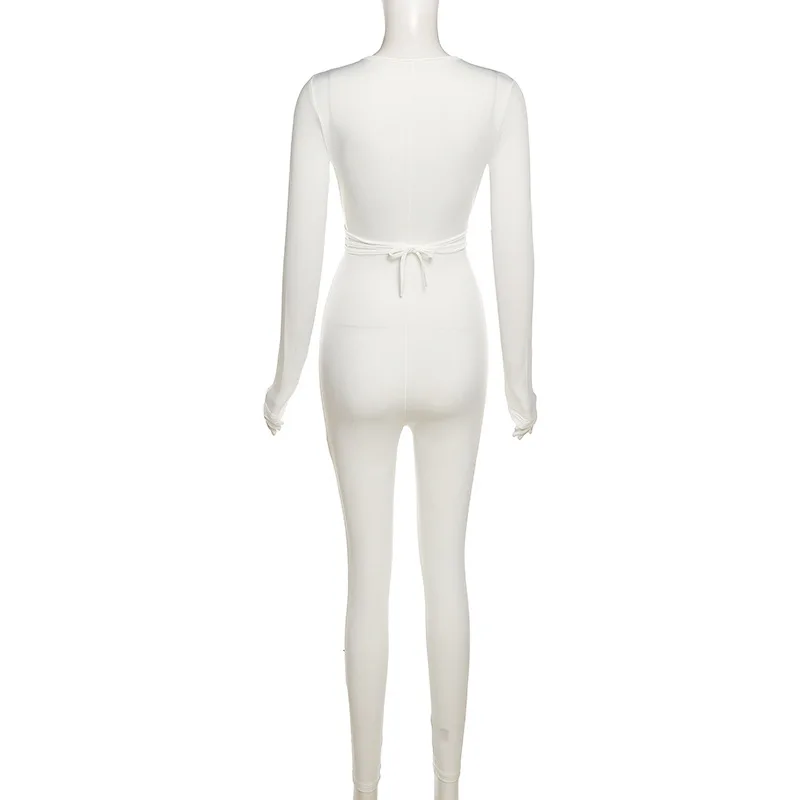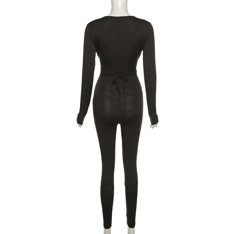 2021 облегающий однотонный костюм с длинным рукавом и открытым пупком, женский модный летний сексуальный женский комбинезон
