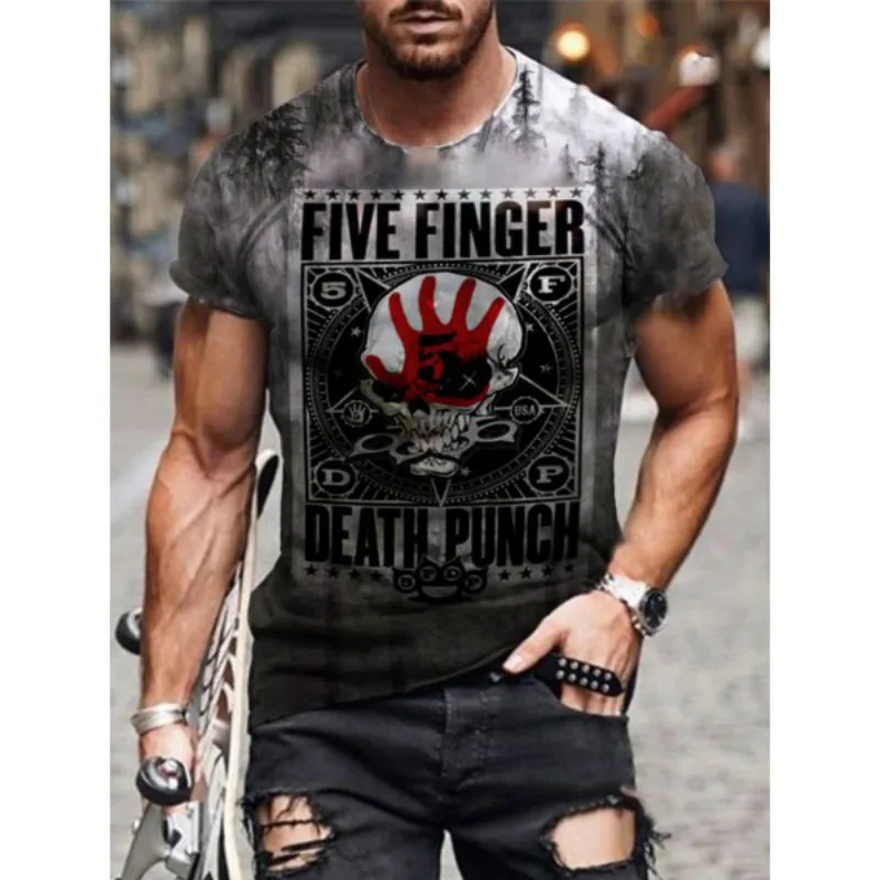 Футболка мужская в стиле панк, с коротким рукавом и принтом, лето X...