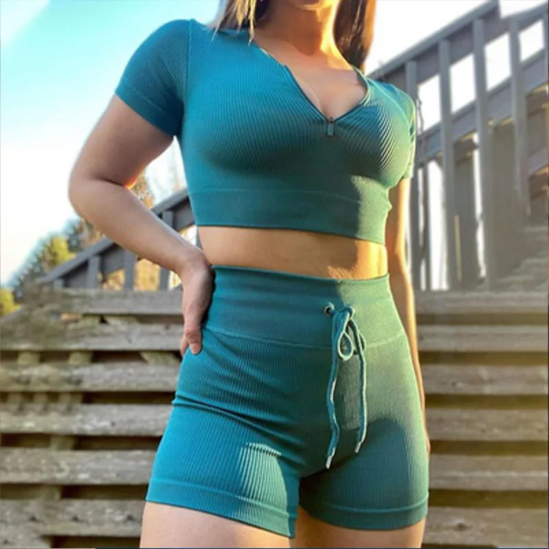 Бесшовный спортивный бюстгальтер на молнии, топ, шорты, футболки дл...