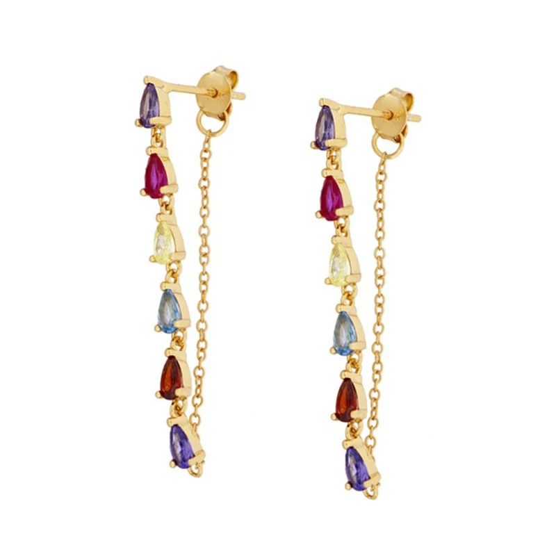 Женские серьги из серебра 925 пробы с радужным цирконием