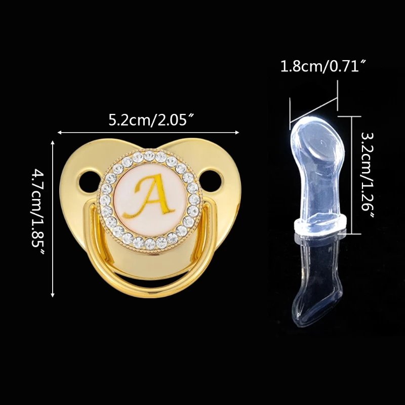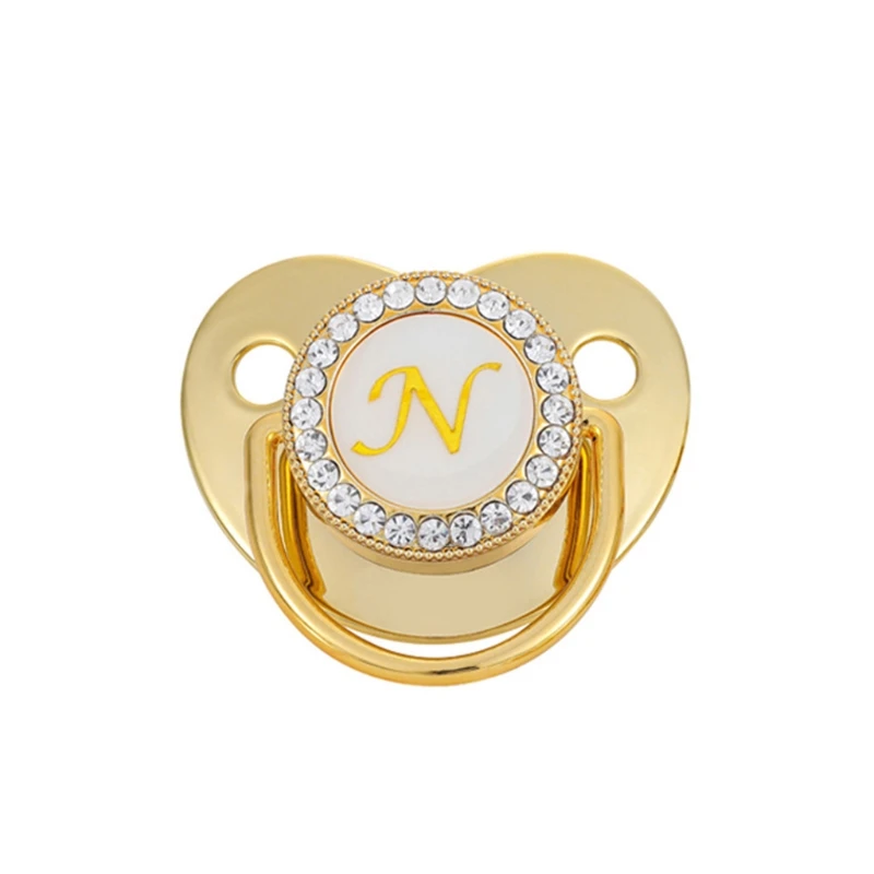 100% новый и высокое качествоСпецификация:Материал: пластик + жидкий силиконРазмер: app.5.2x4.7cm/2.05x1.85inНиппельная головка: app.3.2x1.8cm/1.26x0.71inПодходит для детей 6-18 месяцевЦвет: ЗолотойДополнительный Стиль: A, B, C, D, E, F, G, H, I, J, K, L, M, N ,O, P, Q, R, S, T, U, V, W, X, Y, ZКоличество: 1 шт.Изготовлен из пищевого материала, без запаха, без BPA, безопасен для ребенка.Хрустальные стразы на соске очень сверкающие и великолепные, что привлечет внимание ребенка.Ультра-мягкая силиконовая соска, хороший сосательный вкус для естественного развития полости рта, уважает естественное развитие зубов и десен ребенка. Помогает успокоить спокойное настроение ребенка.Легко моется, нет лапок и трещин для микробов, чтобы спрятаться.