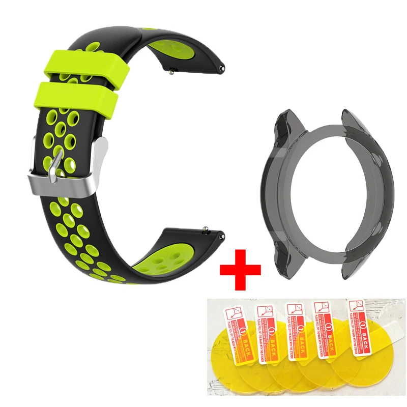 Материал: силиконДоступные цвета на выборРазмер ширины: 22 ммРазмер запястья подходит для 155-210 мм Посылка включает в себя:1x силиконовый ремешок для часов1x чехол5x Защита экрана1x влажные салфетки1x сухие салфеткиПримечание: (часы в комплект не входят)