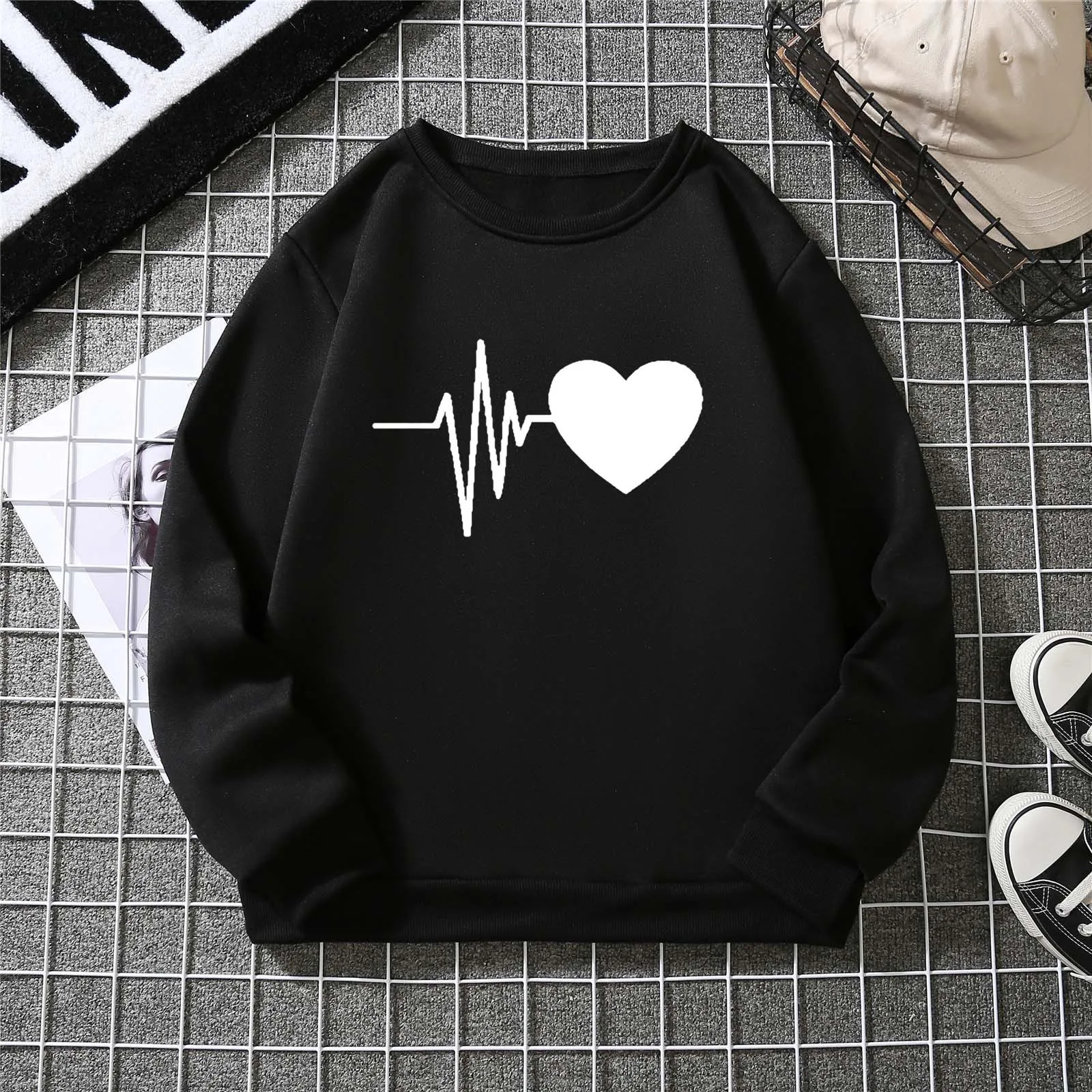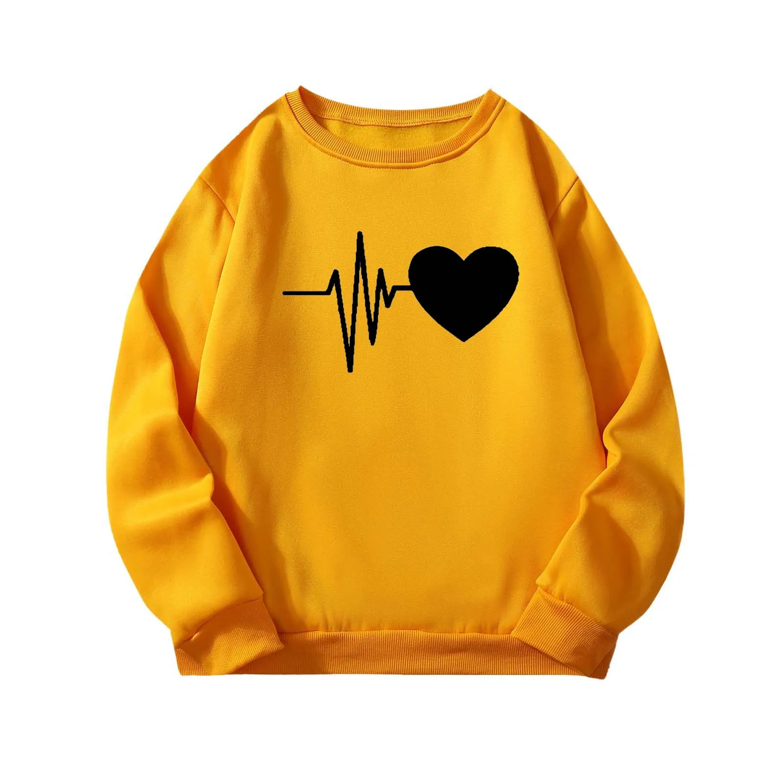 Женская Осенняя Толстовка свободного покроя с принтом сердца и длинным рукавом