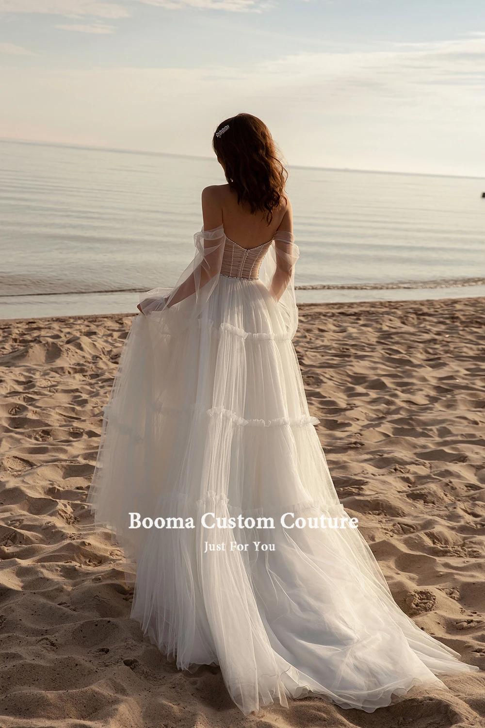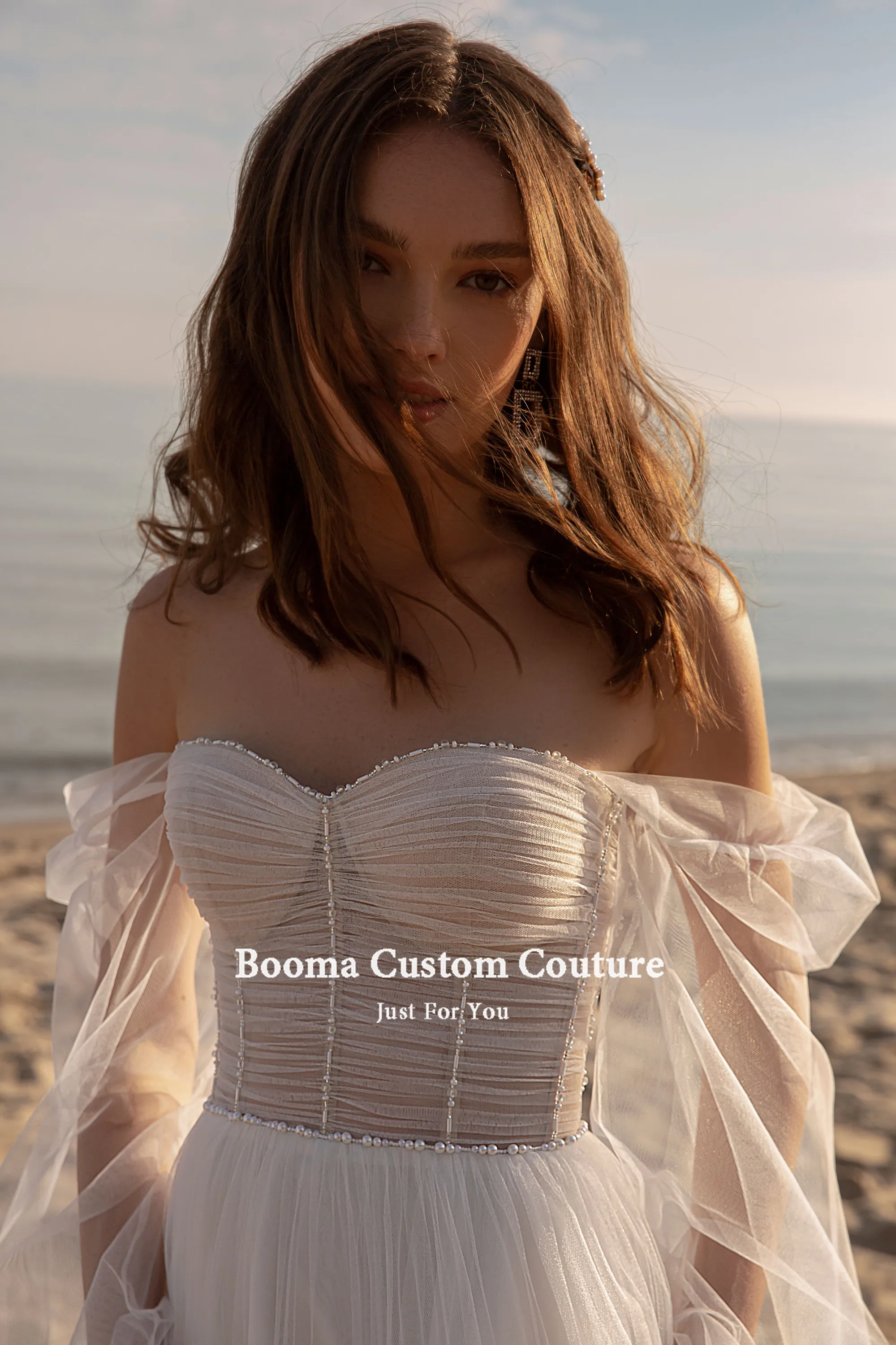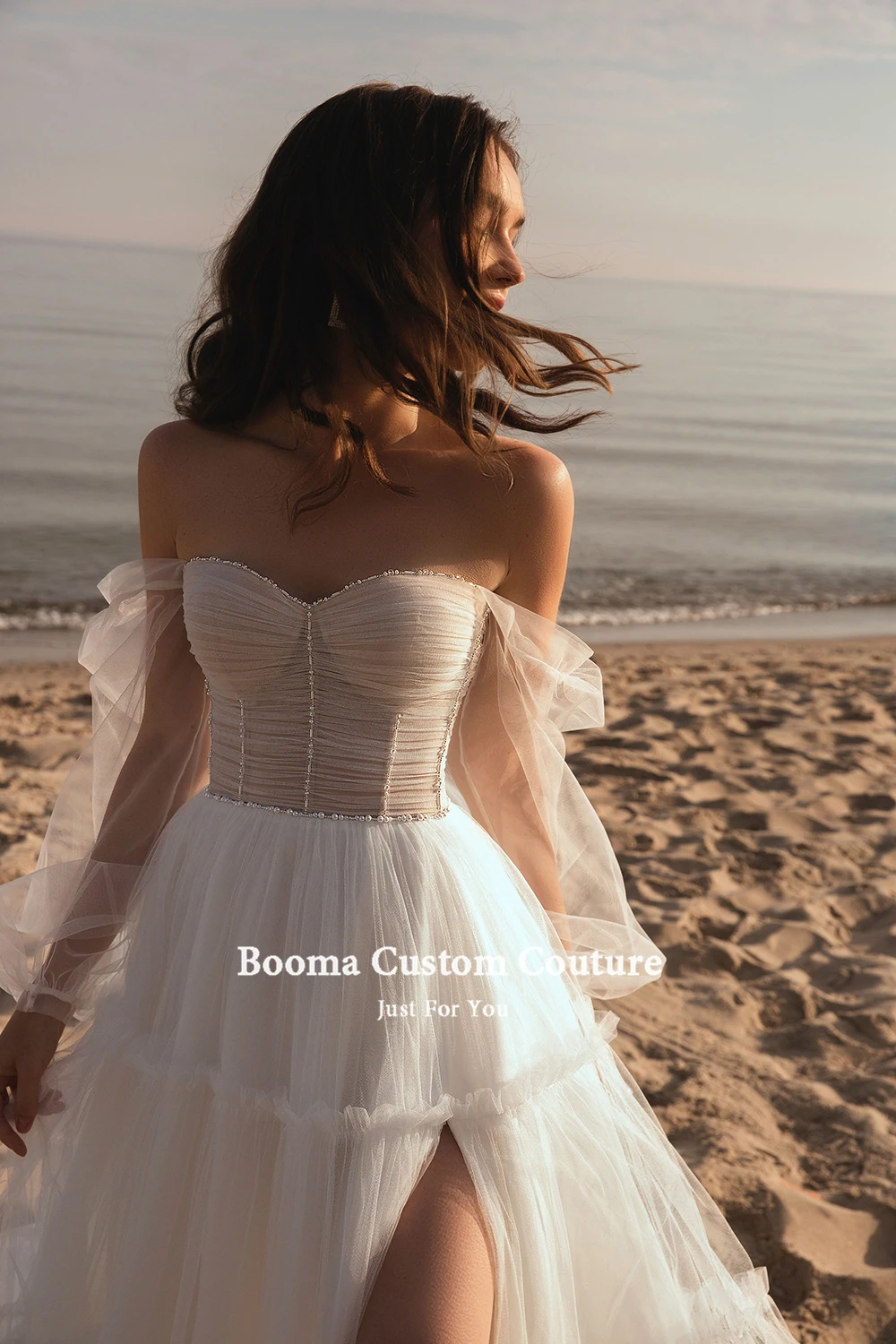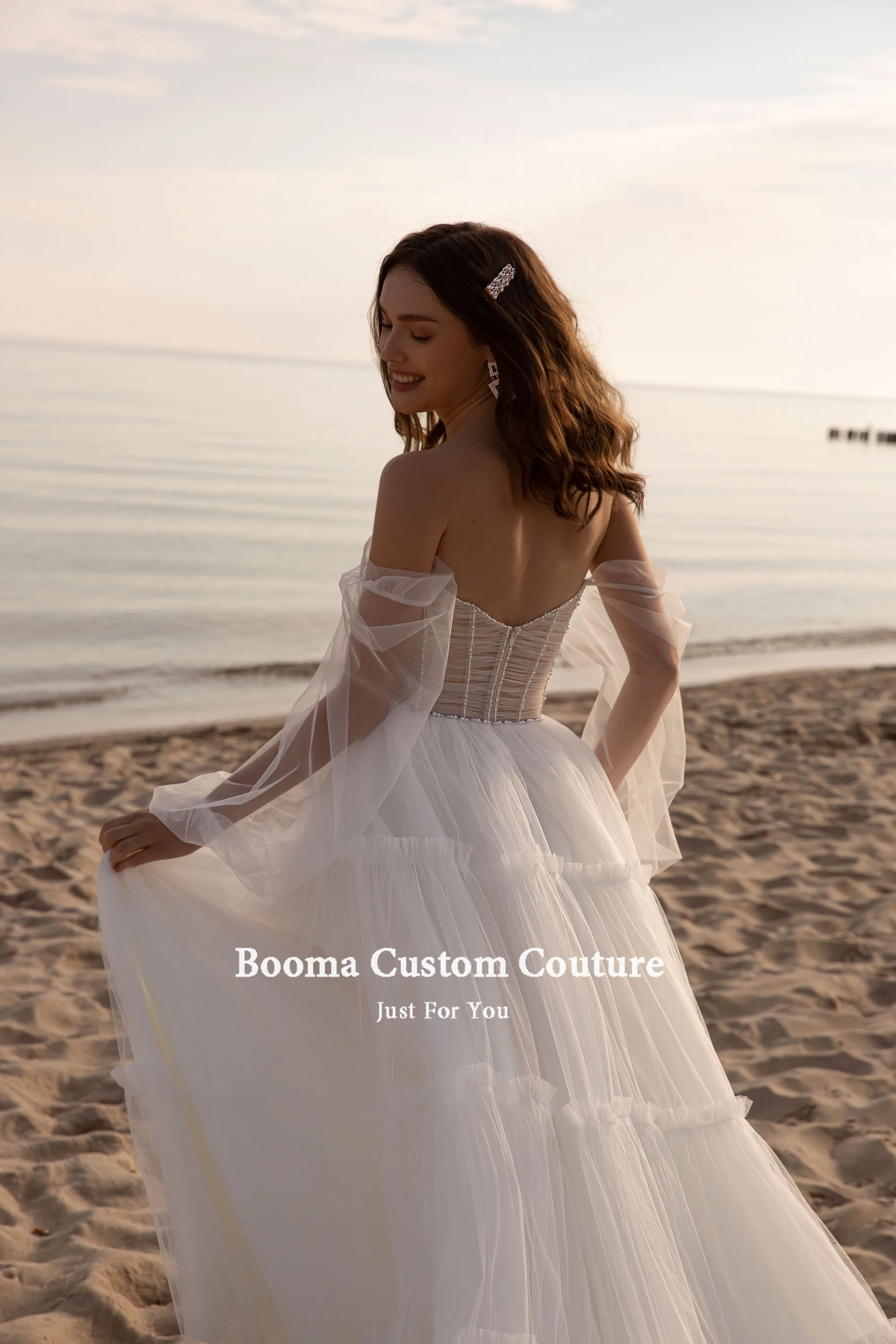 Женское платье с открытыми плечами Booma, Пляжное свадебное платье-трапеция с рукавами-фонариками и разрезом на спине, 2021