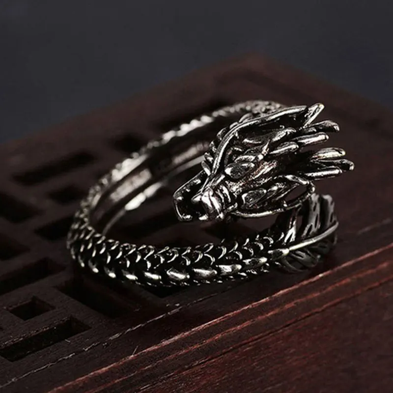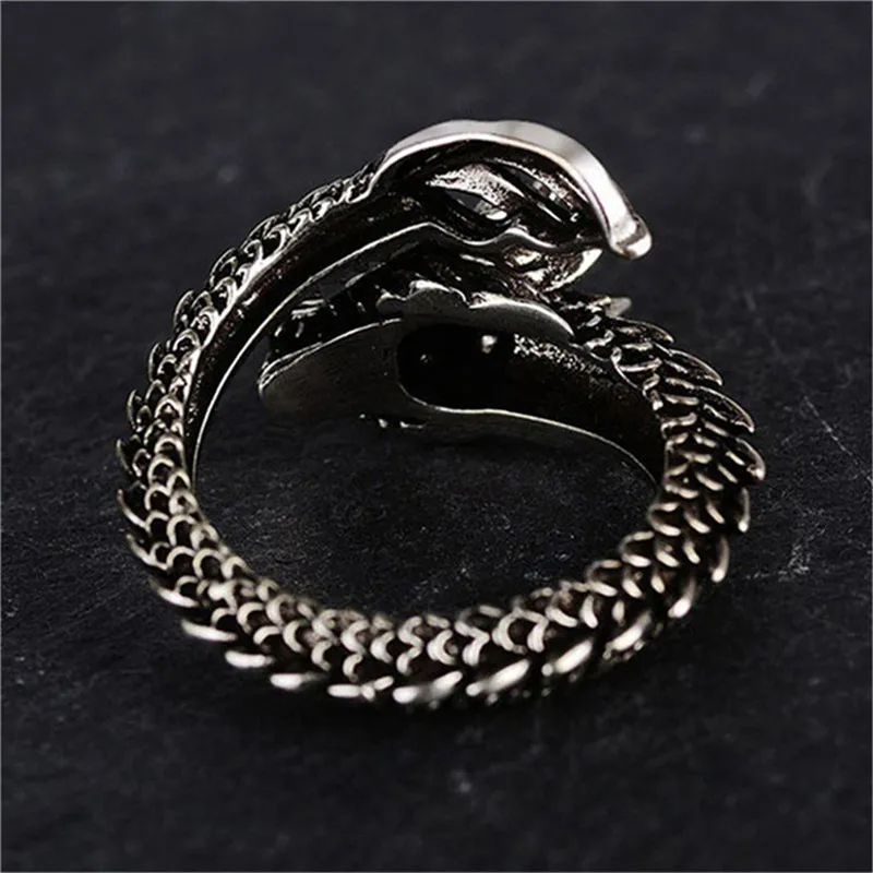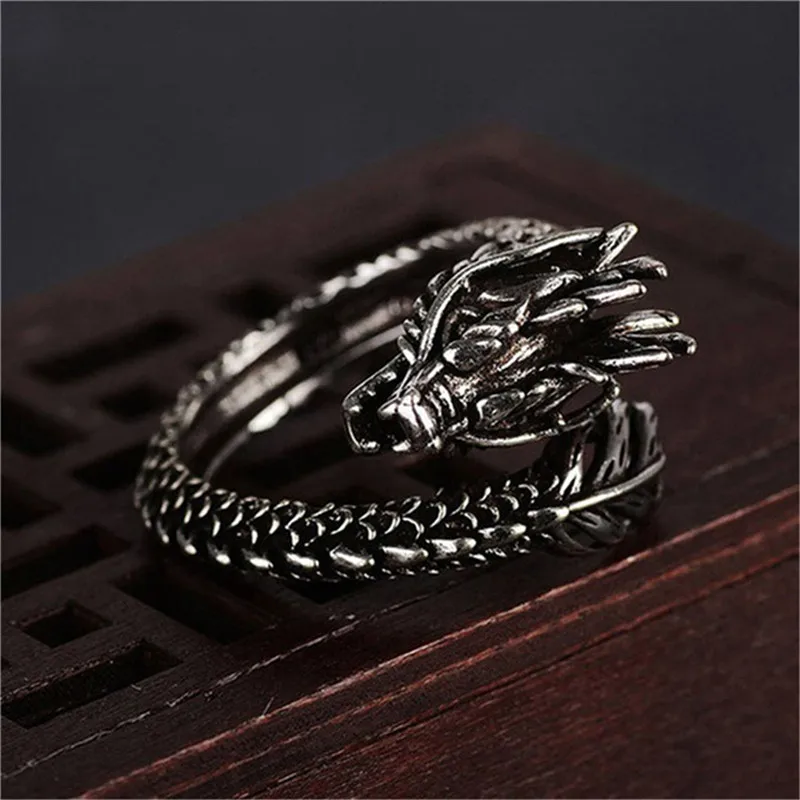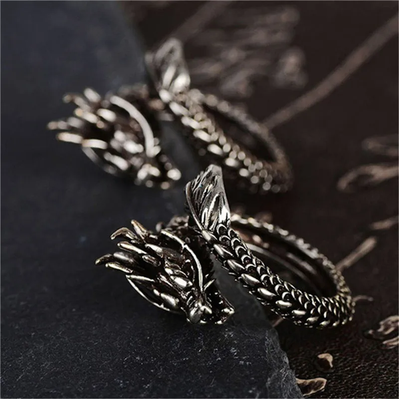 Кольцо с драконом в стиле унисекс, регулируемое ювелирное изделие в стиле ретро, регулируемое в виде черного животного, дракона, металлический сплав, 1 шт.
