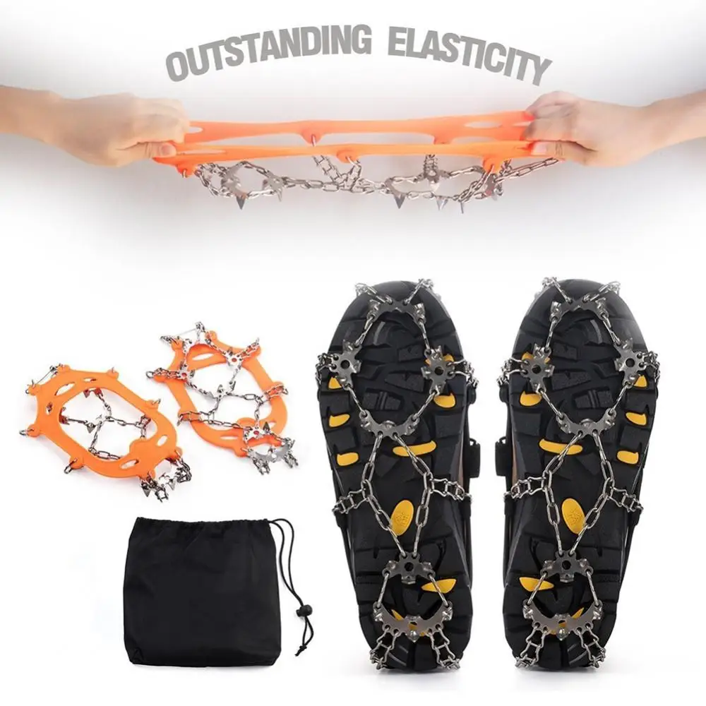 Crampons traction cleats Grip ice snow boots walking climbing fishing hiking winterTraction cleats women's men's non-slip ice and snow grips with storage bags hiking hiking fishing crampons