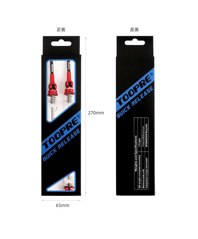 Бренд: TOOPREНаименование: быстросъемный рычагМатериал: корпус из титанового сплава TC4 + алюминиевый сплав,Применение: общие для горных/дорожных транспортных средствВес: около 52 г/пара.