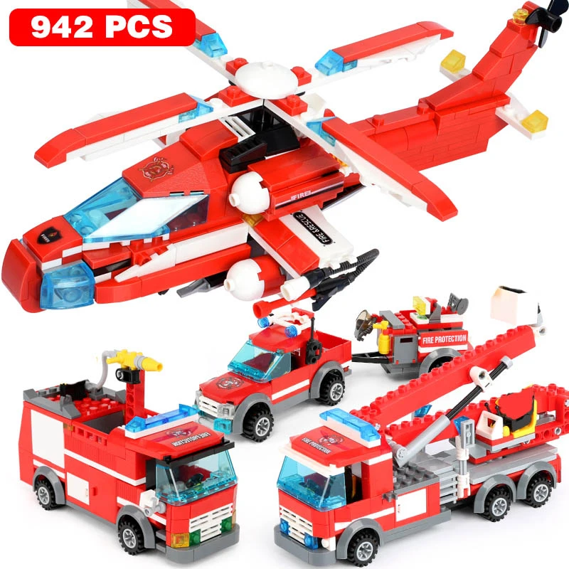 Классические пожарные автомобили, вертолеты, лодки, строительные блоки, городской пожарный, пожарные, фигурки, кирпичи, игрушки для детей, подарки