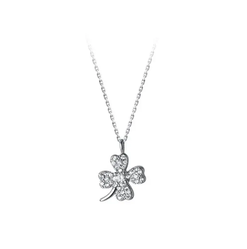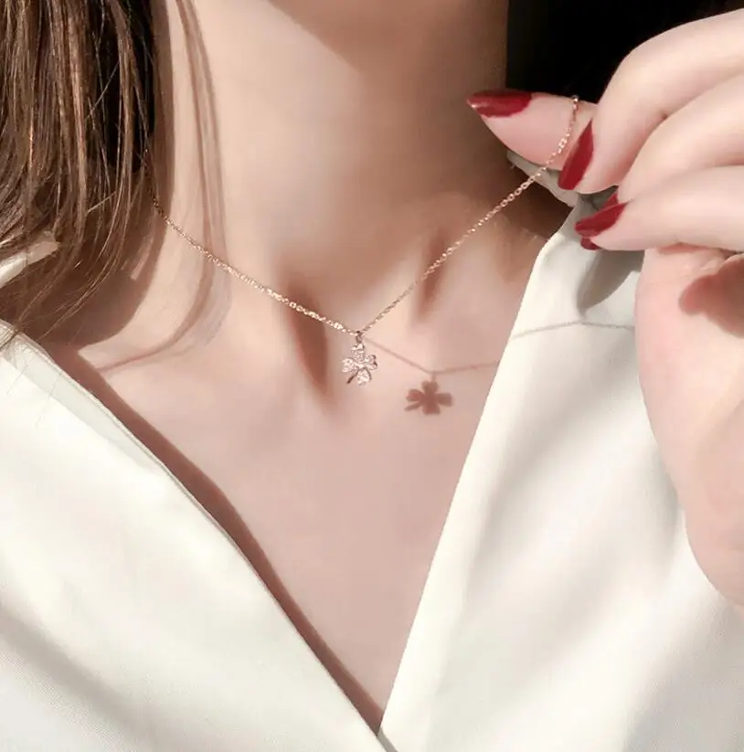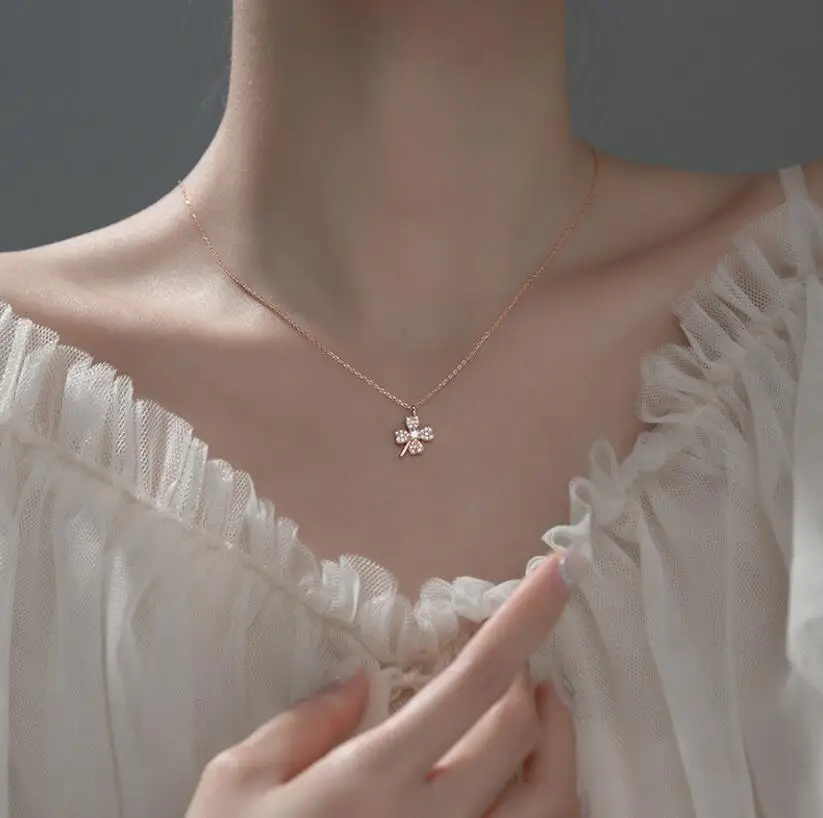 Ожерелье из чистого серебра 925 пробы для девочек, аксессуары из розового золота до ключиц, женское изысканное ожерелье с кулоном в виде клевера из циркония для женщин, ювелирные изделия