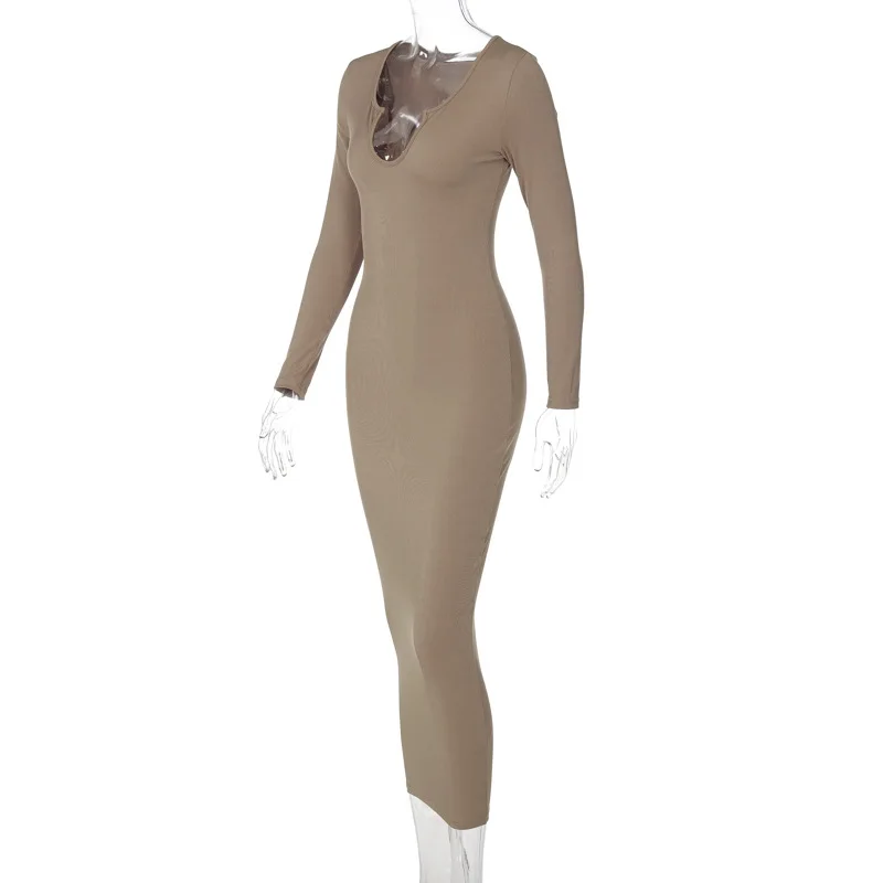 Женское трикотажное платье-миди с длинным рукавом и V-образным вырезом