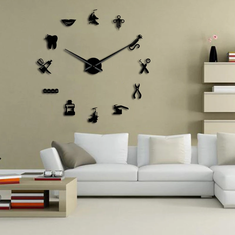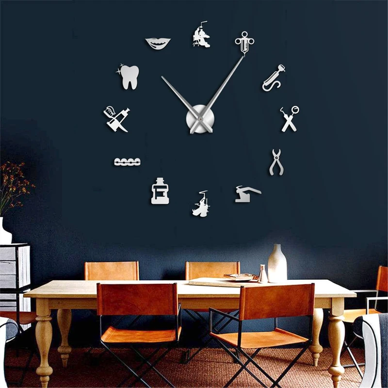Гигантские настенные часы "сделай сам", большие настенные часы, зеркальное зеркало с большой иглой, украшение для офиса, подарок для дантиста Art
