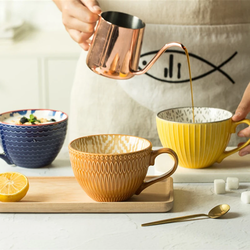 Керамическая чашка для кофе с простым рисунком для детской бытовой большой емкости, кружка для овсянки, посуда для напитков, домашний декор