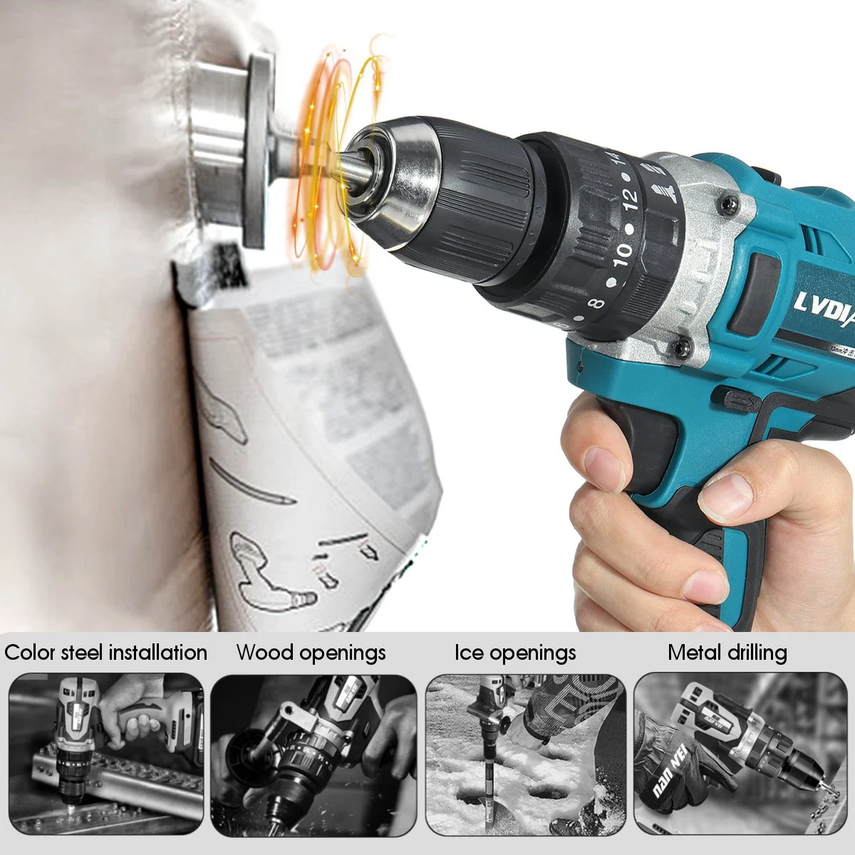 Беспроводная ударная дрель LVDIAN 18 в 3 в 1 2 скорости, перезаряжаемая электрическая отвертка, дрель, Адаптированная к батарее Makita