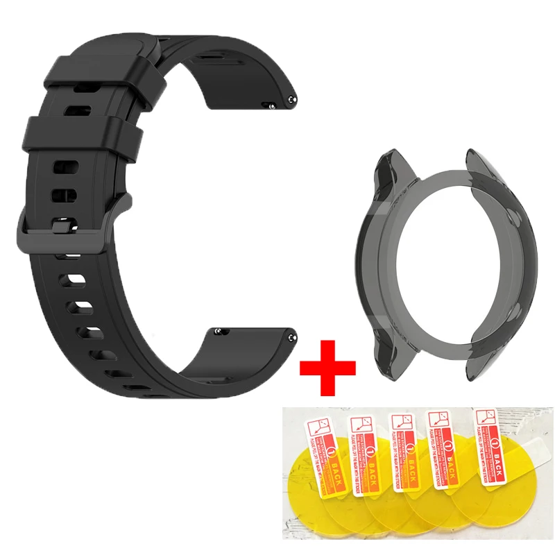 Материал: силиконДоступные цвета на выборРазмер ширины: 22 ммПодходит для запястья диаметром 155-210 мм Посылка входит:1 силиконовый ремешок для часов1x чехол5x Защита экрана1x влажные салфетки1x сухие салфеткиПримечание: (часы в комплект не входят)