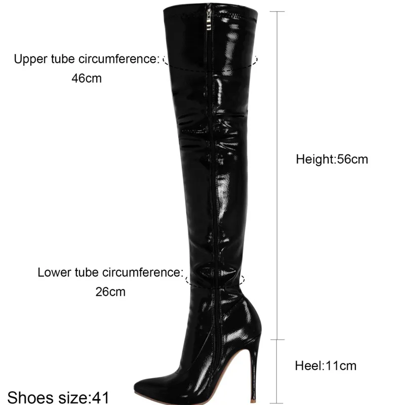 Женские сапоги выше колена, привлекательные лакированные сапоги до бедра на высоком каблуке с боковой молнией, модные водонепроницаемые сапоги с острым носком, женская обувь 2021