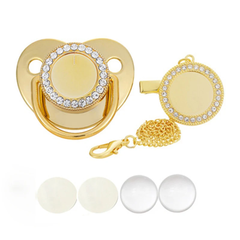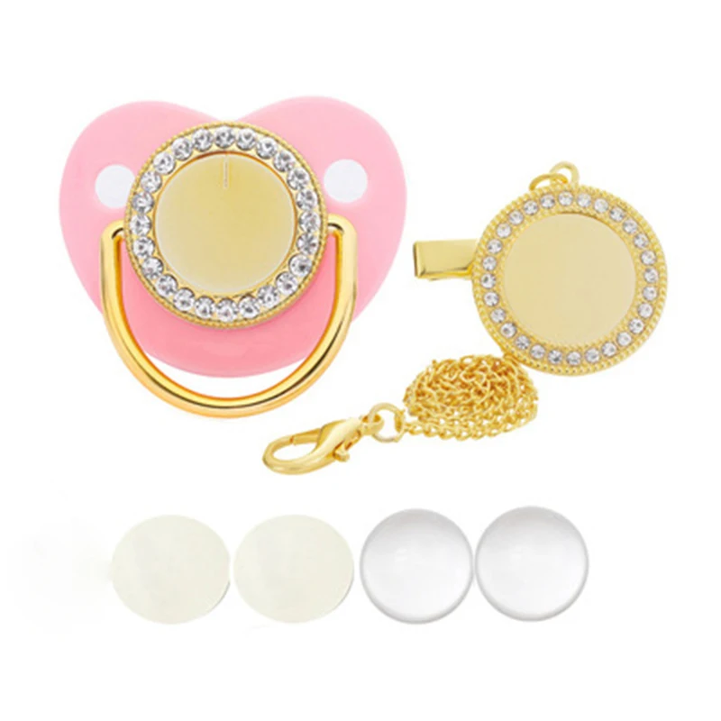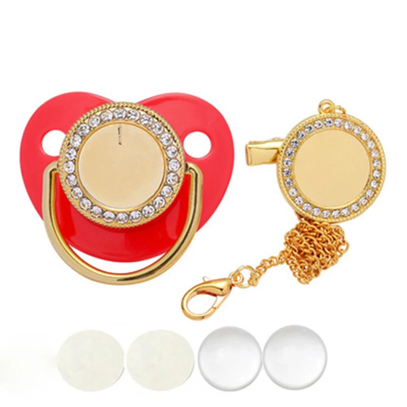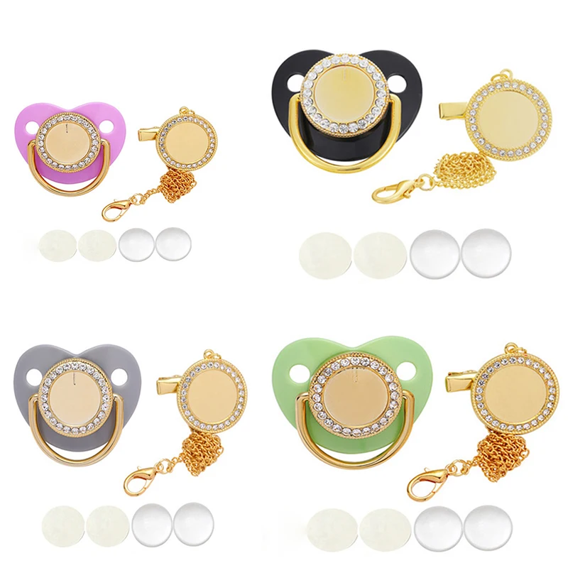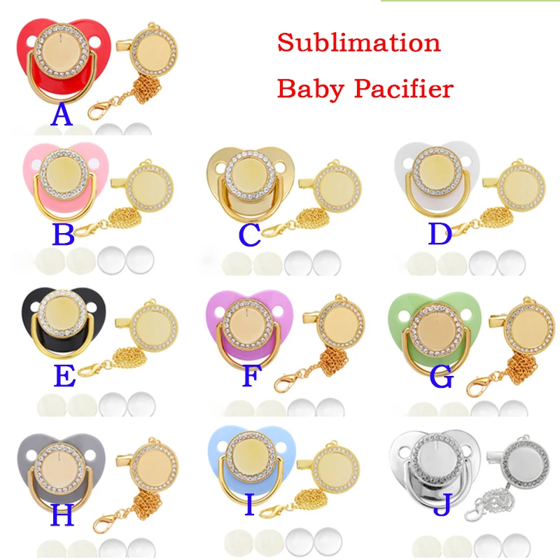 10 цветов пустая сублимационная детская соска Стразы зажимы для пустышки цепочка Золотая шикарная соска для младенцев подарки для младенцев