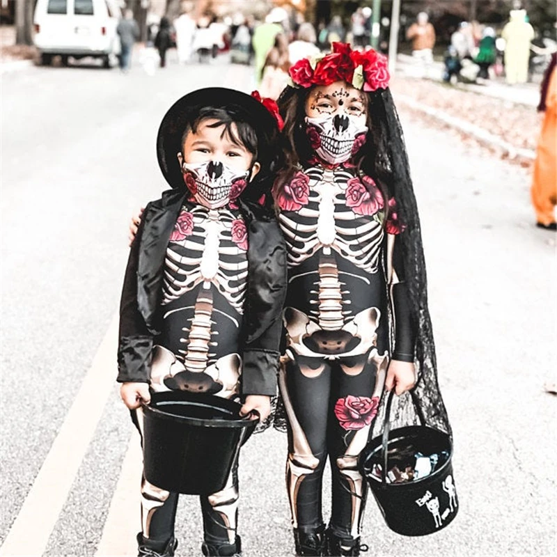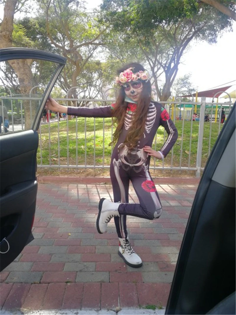 Розовый Скелет Детский комбинезон для Хэллоуина Косплей костюмы для девочек облегающий Zentai карнавальвечерние костюм черепа Полный селекв ужас