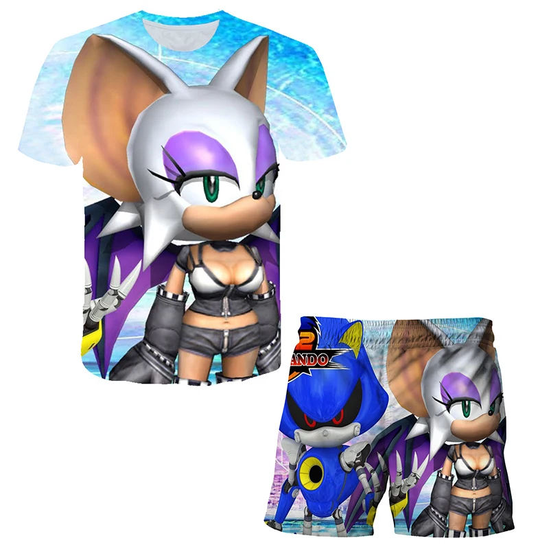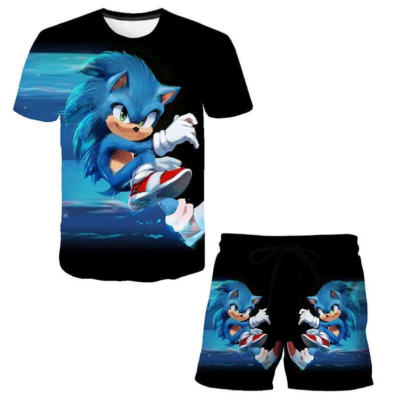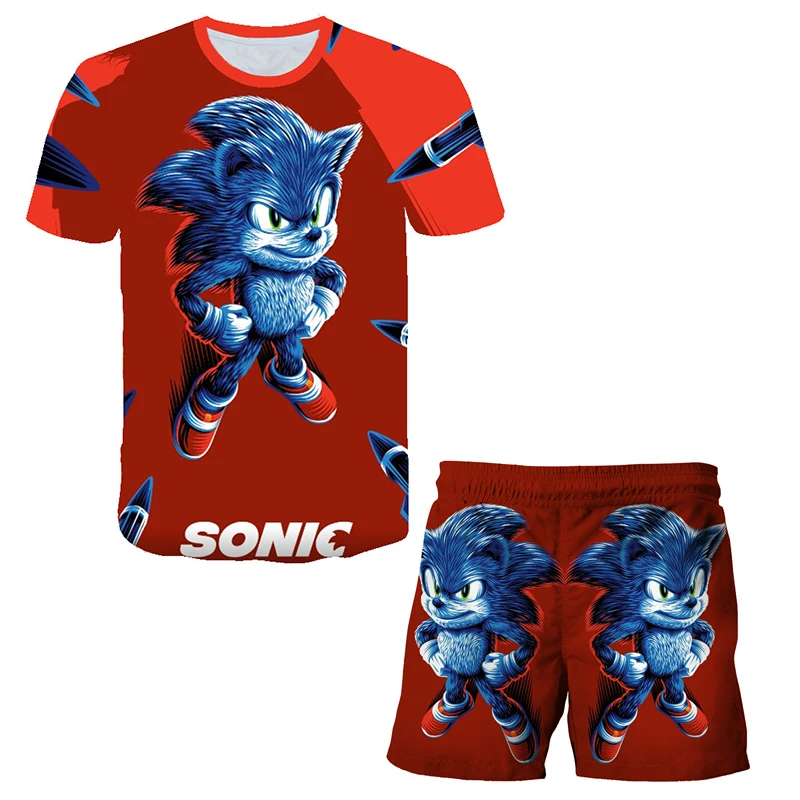 Летняя детская одежда 2021, костюмы с 3D-принтом Sonic, верх и шорт...