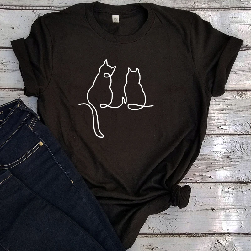 Женские футболки с рисунком черного кота в стиле Харадзюку, винтажн...