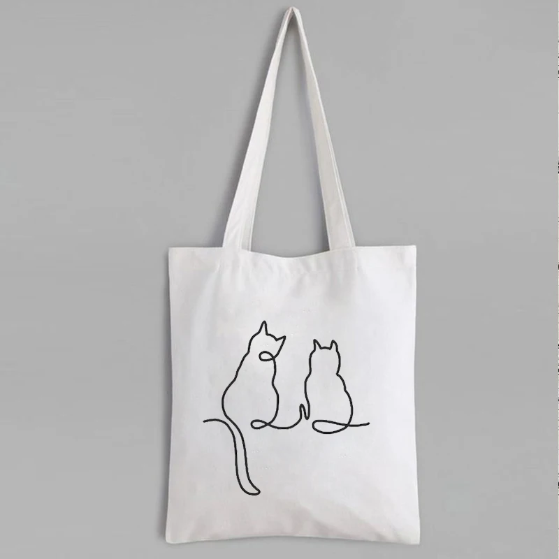 Сумка-тоут One Line с изображением кошек, холщовая, многоразовая, с мультяшным принтом, большие парусиновые сумки