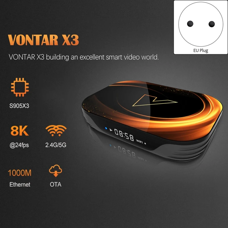 ТВ-приставка VONTAR X3, 8K, Amlogic S905X3, 4 + 64 ГБ, Android 128