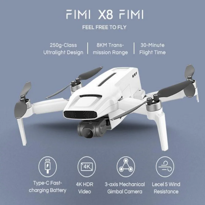 Дрон FIMI X8 Mini, 3-осевой, радиус 8км, 4 к, GPS, дистанционное управление