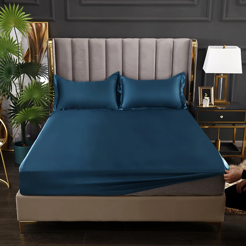 Удобный однотонный атласный чехол для матраса из искусственного шелка с фиксированной резинкой.