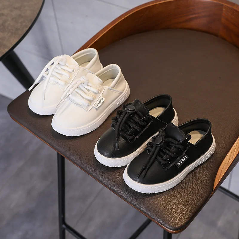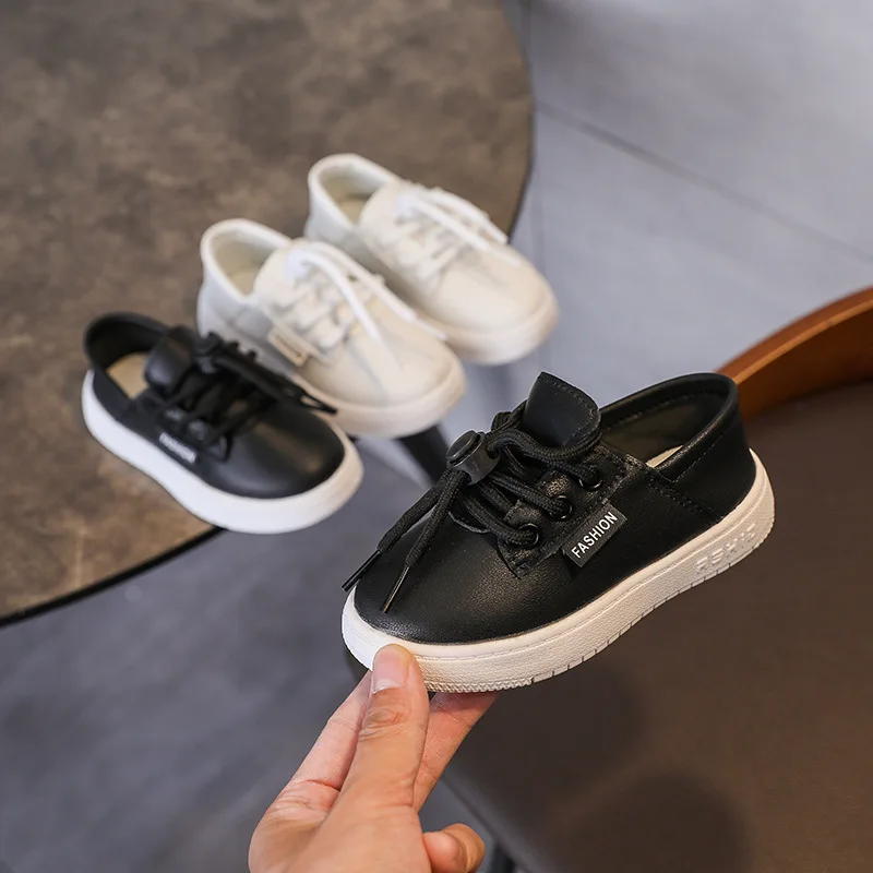 Детские белые туфли, Новинка осени 2022, кожаные низкие шнурки для мальчиков и девочек, мягкая подошва, повседневная обувь на плоской подошве, модная школьная обувь