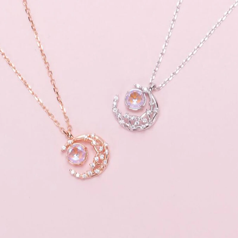 Женское колье с подвеской в виде полумесяца, с кристаллами