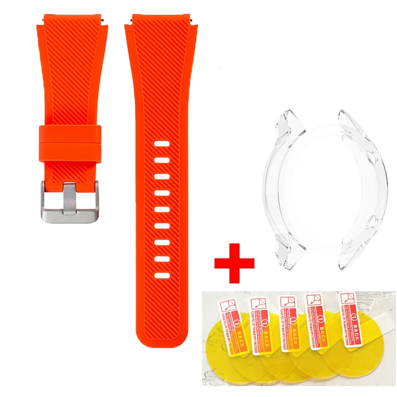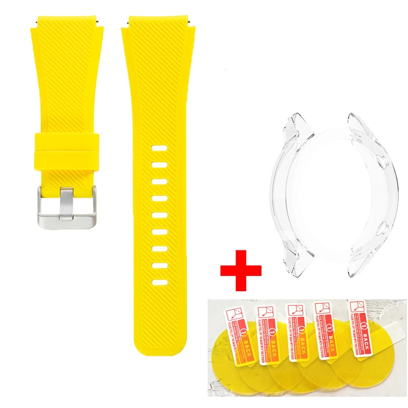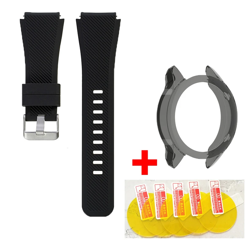 Материал: силиконДоступные цвета на выборРазмер ширины: 22 ммРазмер запястья подходит для 155-210 мм Посылка включает в себя:1x силиконовый ремешок для часов1x чехол5x Защита экрана1x влажные салфетки1x сухие салфеткиПримечание: (часы в комплект не входят)