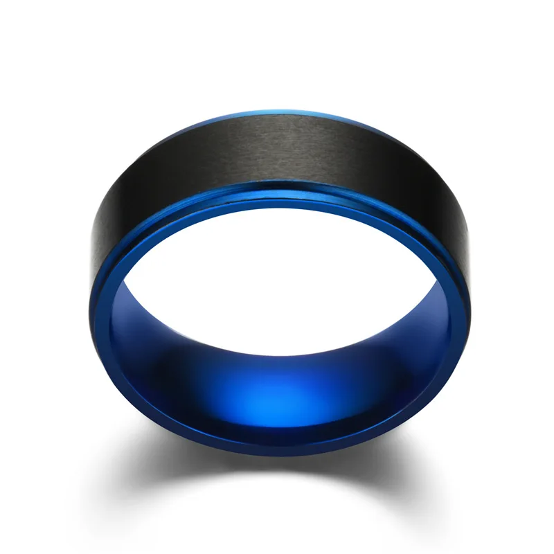 Модные мужские кольца из нержавеющей стали золотистого и синего цвета со скошенными краями, черные инкрустированные серебристые кольца для мужчин, обручальные свадебные браслеты