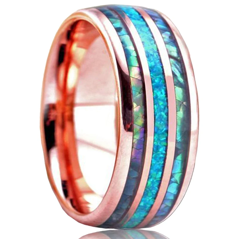 Мужские кольца 8 мм из нержавеющей стали цвета розового золота с инкрустацией опалом
