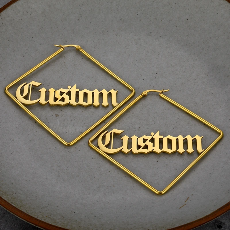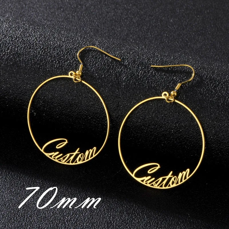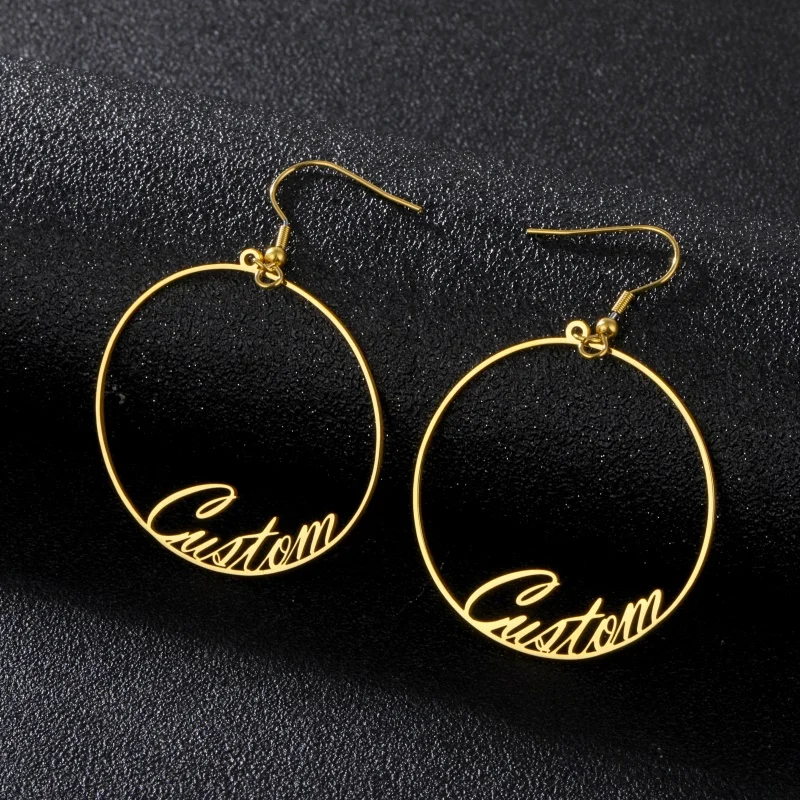 Большие серьги-кольца Wanixm из нержавеющей стали на заказ для женщин и девушек, индивидуальные серьги с надписью, именной табличкой, круглые ювелирные изделия