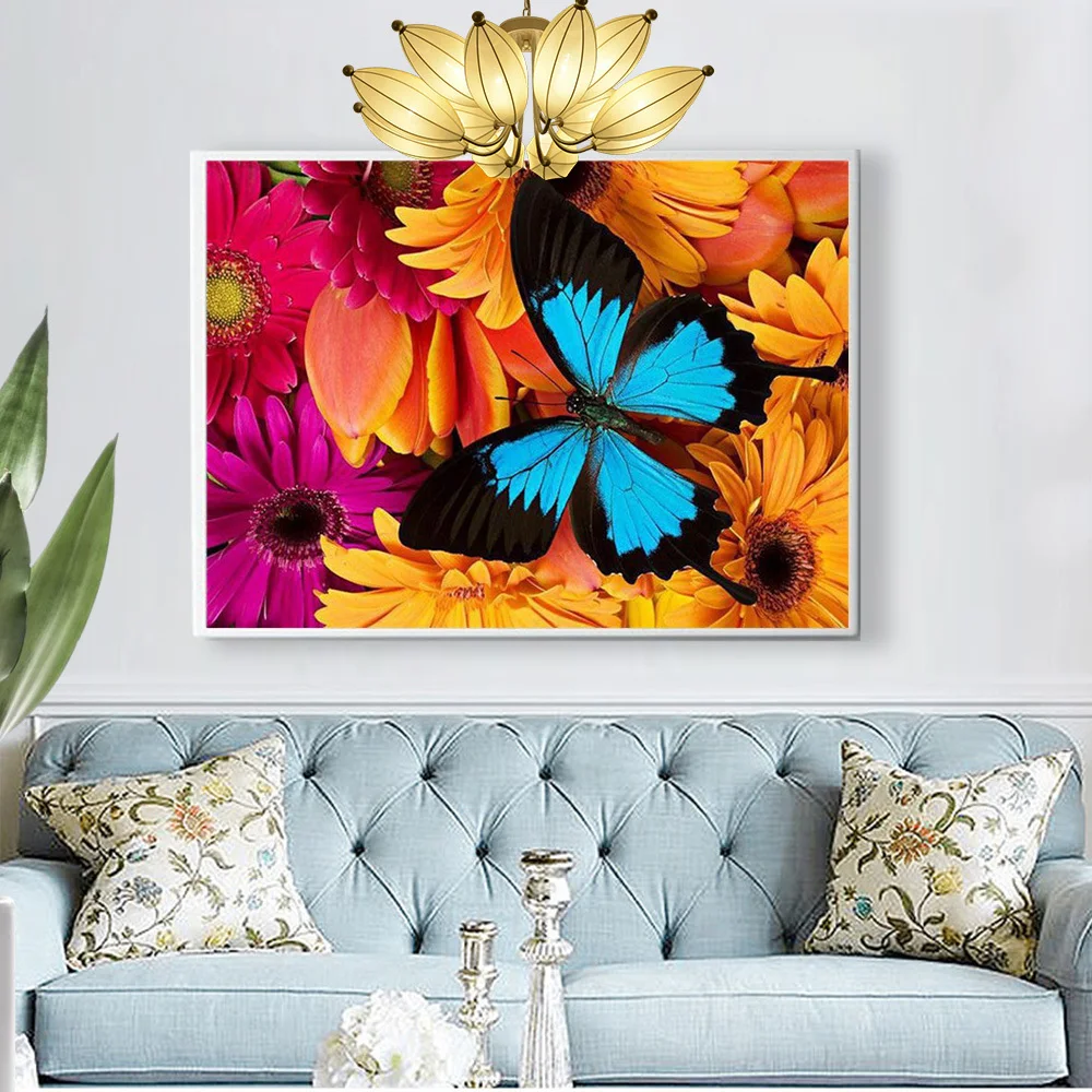 Алмазная мозаика Huacan сделай сам, настенные наклейки с изображением бабочек, цветов, вышивка с животными, цветочный Декор для дома, Алмазное искусство