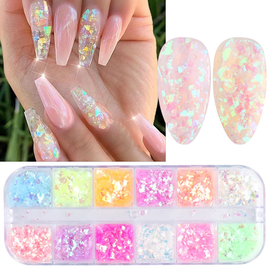 Блестки для ногтей из алюминиевой фольги, 12 ячеек