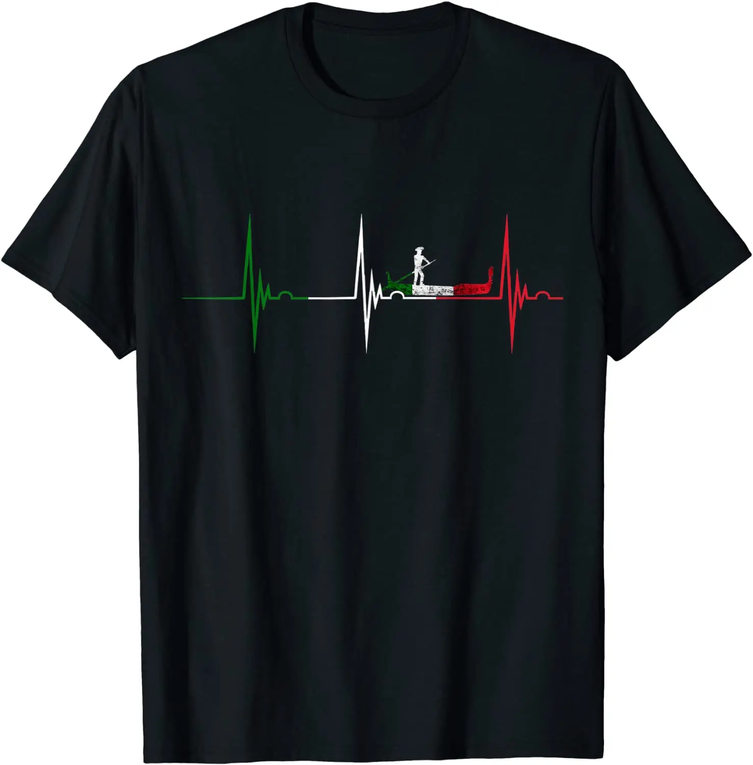 Итальянская Венеция Gondolas сердцебиение ЭКГ Пульс итальянская поездка Футболка мужская футболка
