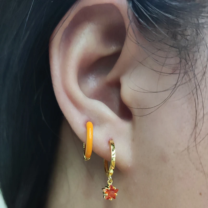 Серьги-кольца из серебра 925 пробы, с эмалированным покрытием