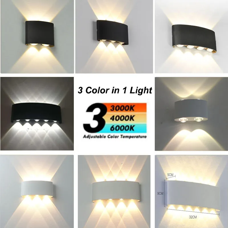 Светодиодный настенный светильник 3 цветов, меняемые водонепроницаемые лампы для крыльца, современный алюминиевый настенный светильник вверх и вниз для двора, коридора, светильник