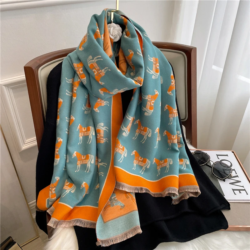 2021 роскошный женский кашемировый шарф с принтом лошади, толстое т...