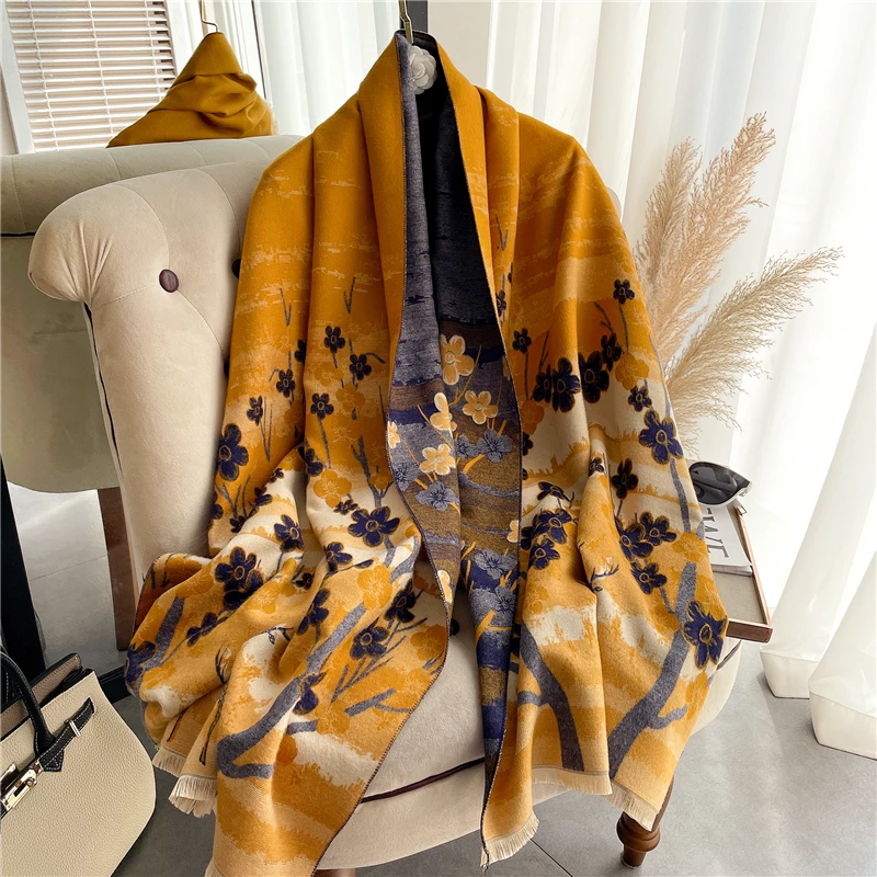 Зимний шарф, Женская шаль с цветочным принтом, шали и накидки, Каше...