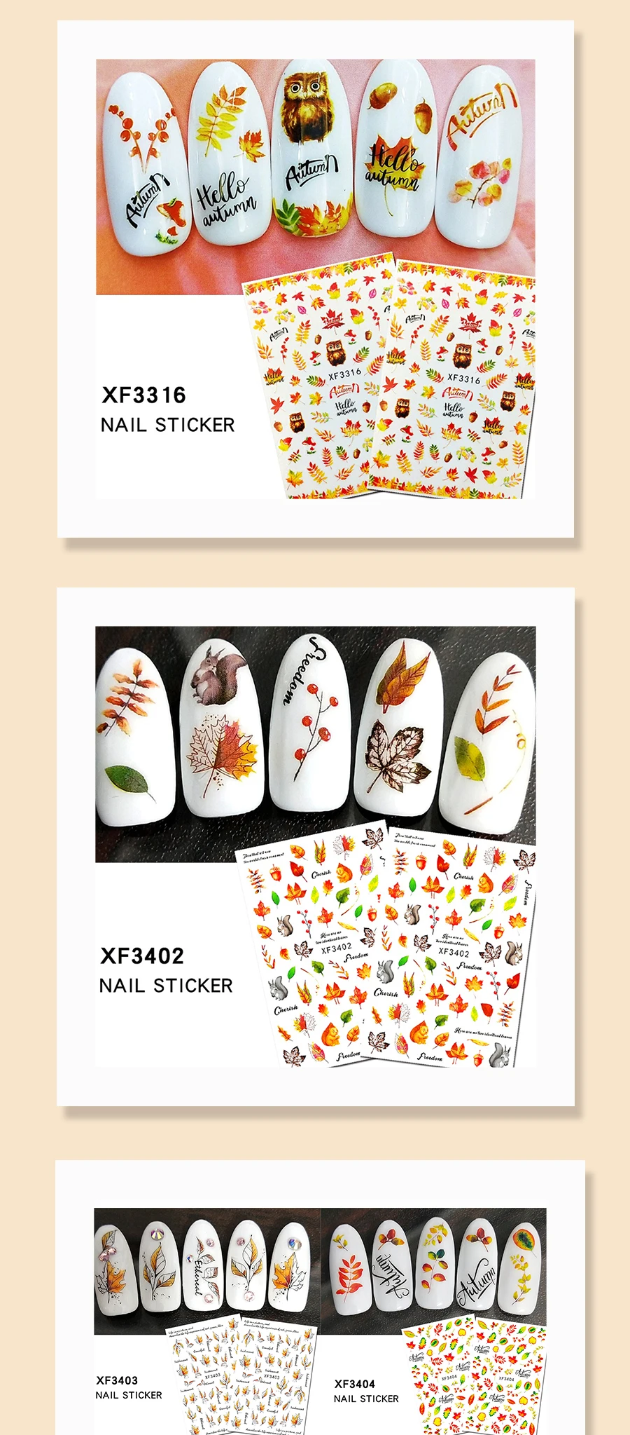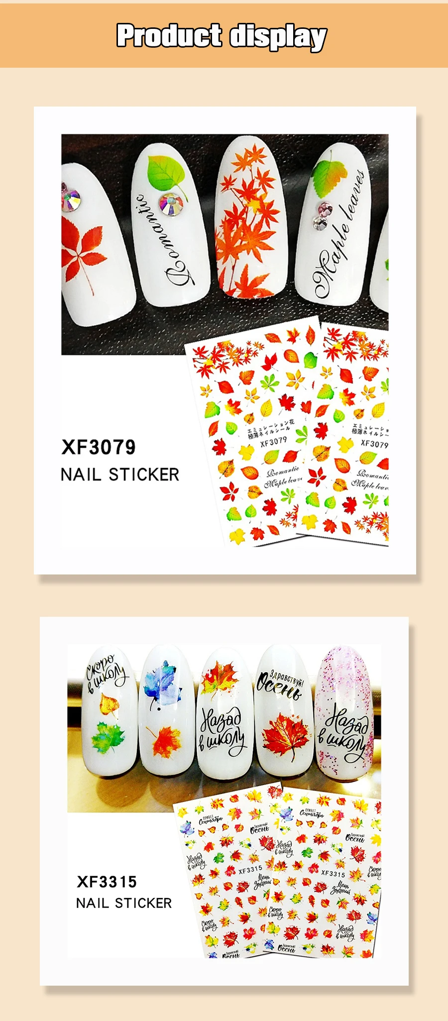 Осенние кленовые цветы, наклейки для дизайна ногтей, наклейки для л...