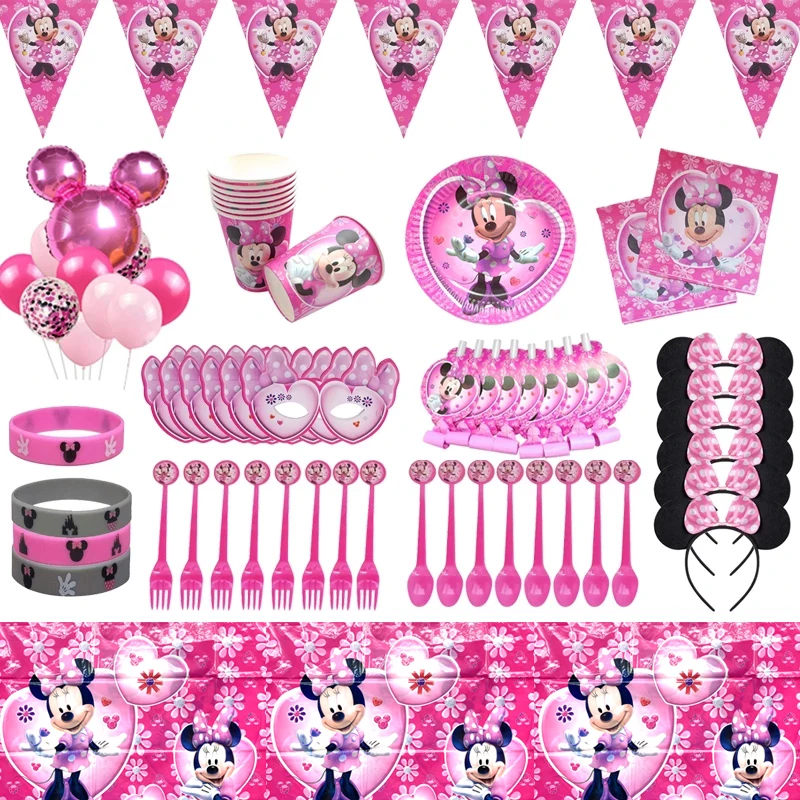 Тема Диснея Минни Мауса украшение для дня рождения девочки набор одноразовой посуды тарелка для чашек салфетки воздушный шар