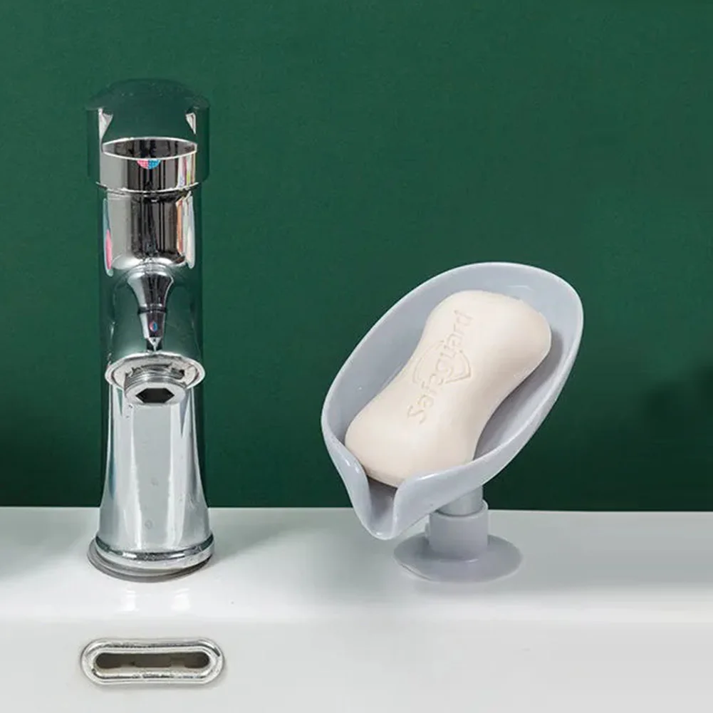 Ящик для мыла в форме листа, без перфорации, на присоске, сливная п...
