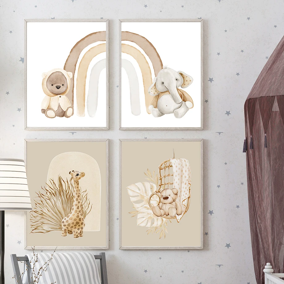 Плакаты и принты в скандинавском стиле, медведь, слон, жираф, Ленив...