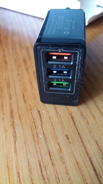 Scratched case, smells burnt, fingerprints all over. This charger is used and sold as new. That is NOT okay. They tried to hide/cover the scratches under a piece of foil. This was the first and last time, I've bought something from this seller.
