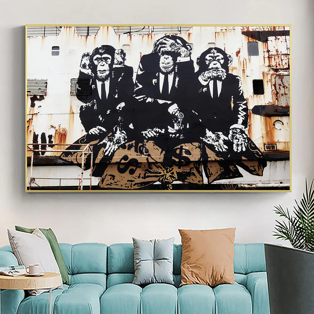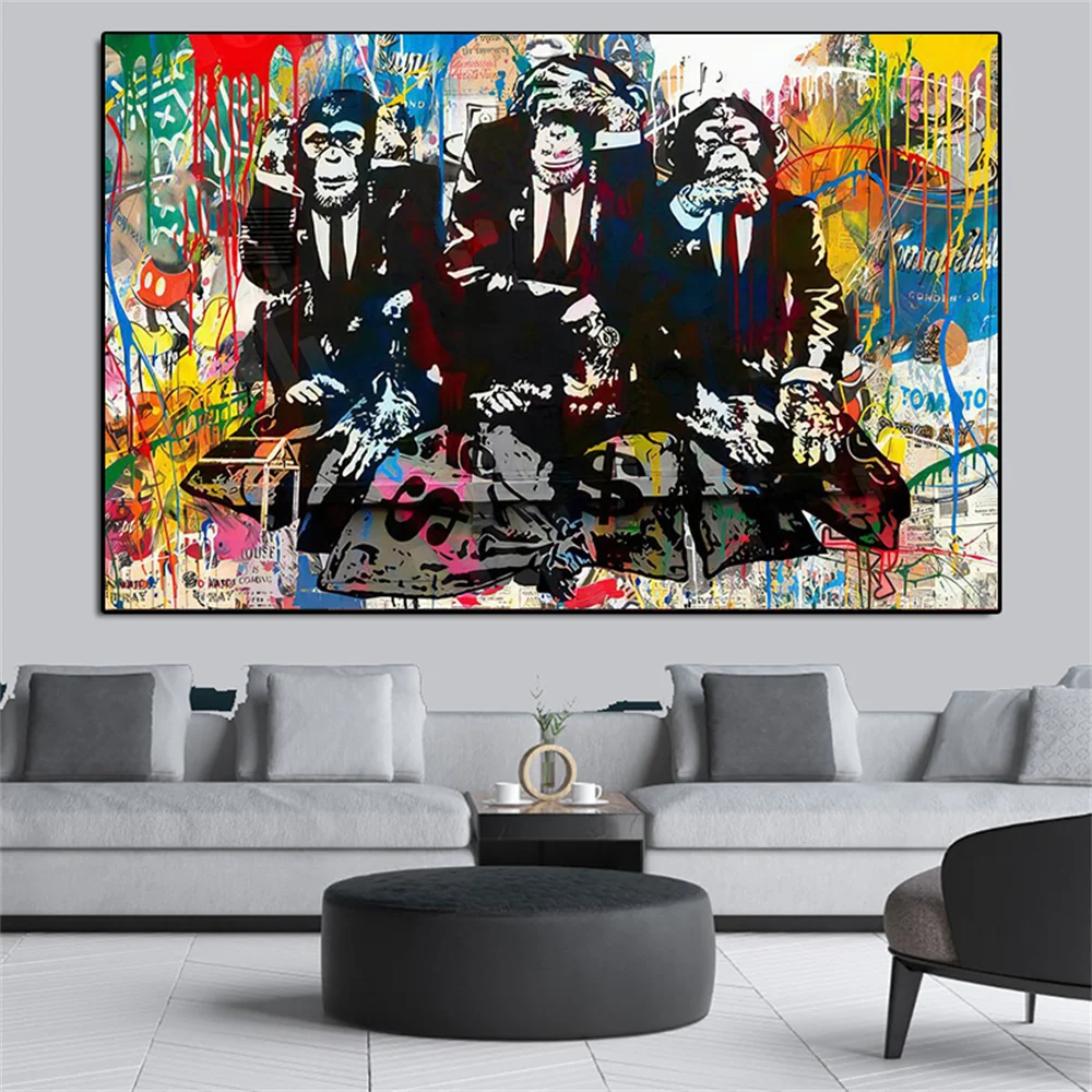 Забавная обезьяна в костюме, холст, животные, граффити, плакаты, печать, настенные картины для гостиной, Современное украшение для стен