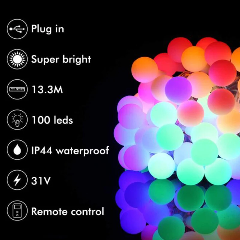 Многоцветный светодиодный светильник с шаровой цепочкой, водонепроницаемая сказочная лампа, напольный Аккумуляторный светильник, атмосферный светильник для свадьбы, Рождественская гирлянда, вечерниеХарактеристика:1. Светильник строка оснащена 20/40/80 светодиодный ламп, а светильник строка может быть превращено в цветной светильник s, с низким потреблением, Малое тепловыделение и защиту окружающей среды. Они не излучают ультрафиолетовый светильник, и они не будут перегреваться и загрязнять. Лучший выбор для здоровья!2. Питание от аккумуляторов AA (не входят в комплект). Вы можете перемещать декоративный светодиодный светильник куда угодно. Батарейный блок прочный и может быть легко украшен без кабелей. Аккумулятор может быть заменен непосредственно.3. IP65 водонепроницаемый рейтинг, очень подходит для украшения наружного/внутреннего, столовой, сада, спальни, гостиной, столовой, террасы, кухни и любых других мест!4. Декоративный светодиодный светильник имеет различные варианты для создания яркой среды.5. Идеальные вечерние украшения на открытом воздухе, очень подходят для дворов, домов, садов, очень подходят для свадеб, дней рождения, рождественских вечеринок и других вечеринок.Спецификация:Длина: 2 м/6,56 футов, 3 м/9,84 фута, 4 м/13,12 фута, 6 м/19,68 фута, 10 м/32,80 футаСветильник Цвет: Красочный светильникИсточник питания батареи: 3 * AAA батареи (без батарей)Примечание:1. Из-за различных настроек монитора и светильник эффект, фактический цвет элемента может быть s светильник ly отличается от цвета, представленного на снимках. Спасибо!2. Возможны отклонения в 1-2 см вследствие измерений вручную.
