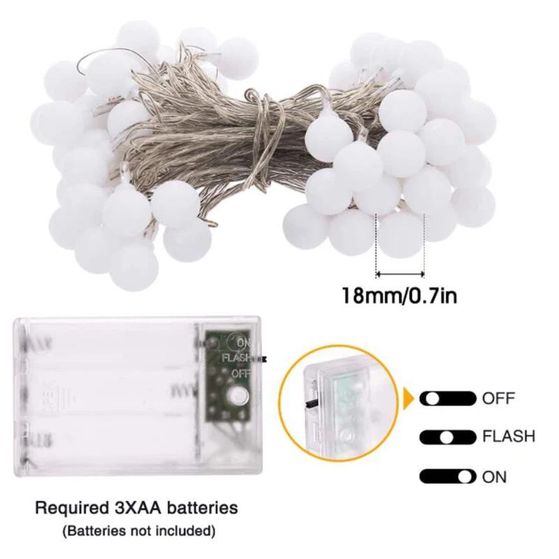 Очень красивая гирлянда с шариками нежного света . 7 режимов подсветки .
