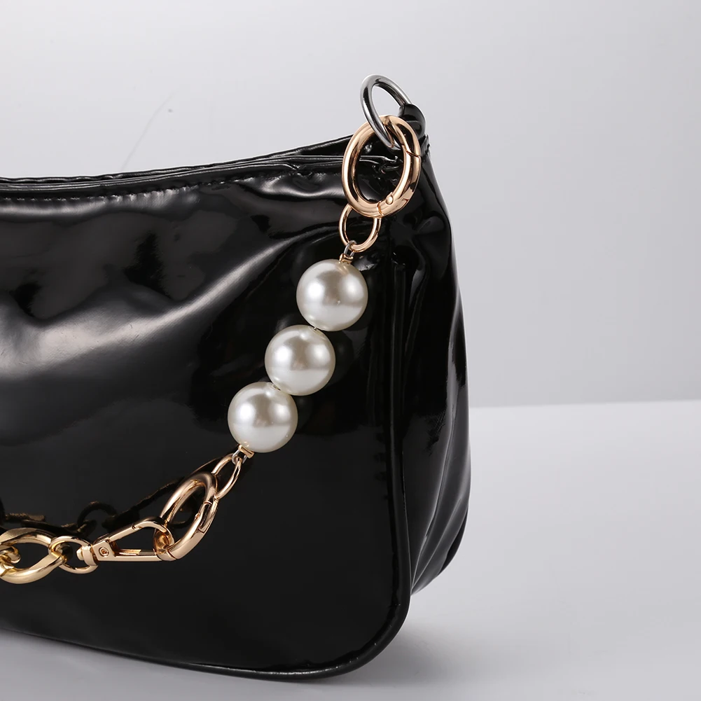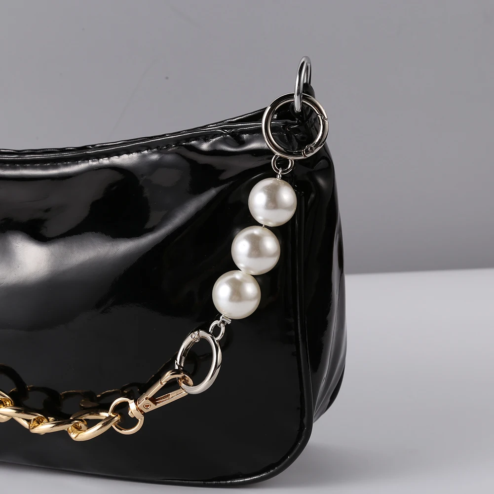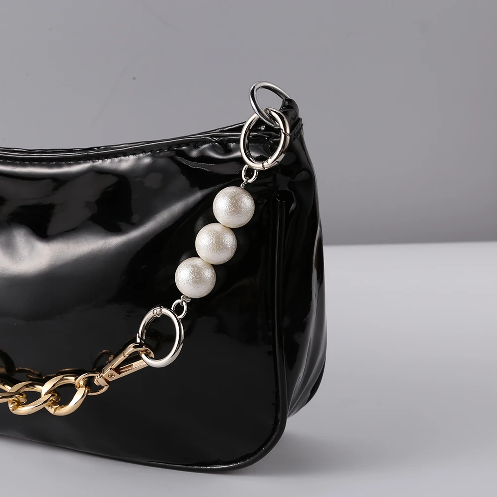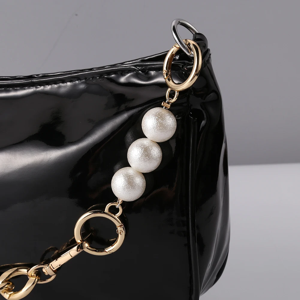 14 см, длинная сумка, цепочка через плечо, удлинитель, металлическое кольцо с жемчужными бусинами, сменная цепь, Женский кошелек, клатч, сумочка, ремешок, жемчужный Декор
